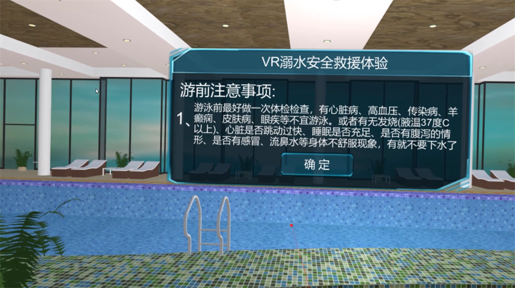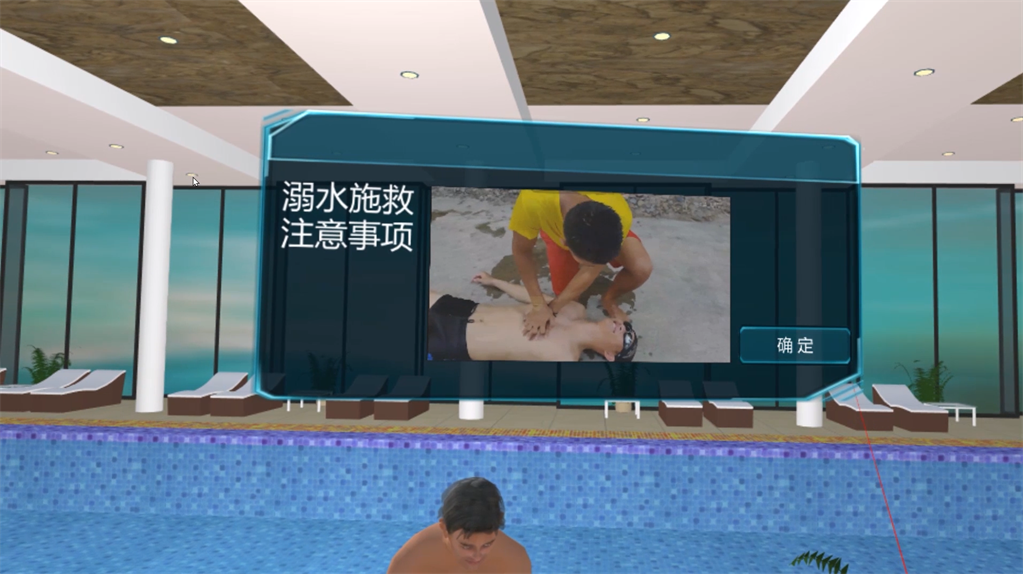 VR溺水救援教育體驗(yàn)是基于現(xiàn)實(shí)生活中的溺水場(chǎng)景進(jìn)行還原,體驗(yàn)者以第一視覺的沉浸體驗(yàn),在虛擬場(chǎng)景中學(xué)習(xí)遇到人員意外溺水后,我們作為施救者,應(yīng)如何應(yīng)對(duì),如何采取有效措,如何施救,如何進(jìn)行心肺復(fù)蘇操作、如何自救等內(nèi)容。