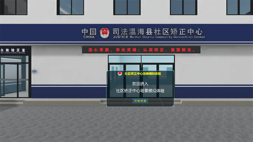 場景精確復現(xiàn)社區(qū)矯正中心的“三區(qū)十八室”,體驗者仿佛置身其中,可自由漫游和互動。系統(tǒng)還配備語音介紹每個科室,助力體驗者更深入地認識和了解社區(qū)矯正中心。