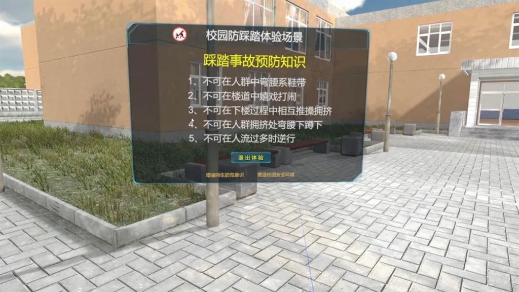 駿馬校園VR防踩踏體驗場景軟件通過VR情景式模擬+防踩踏知識的結(jié)合方式,有效增強了學(xué)生的安全防護意識,我們雖然無法提前預(yù)知災(zāi)難,但可以做到防患于未然。在虛擬場景中,學(xué)生可以通過體驗踩踏事件的全過程,學(xué)會自我保護的技能。